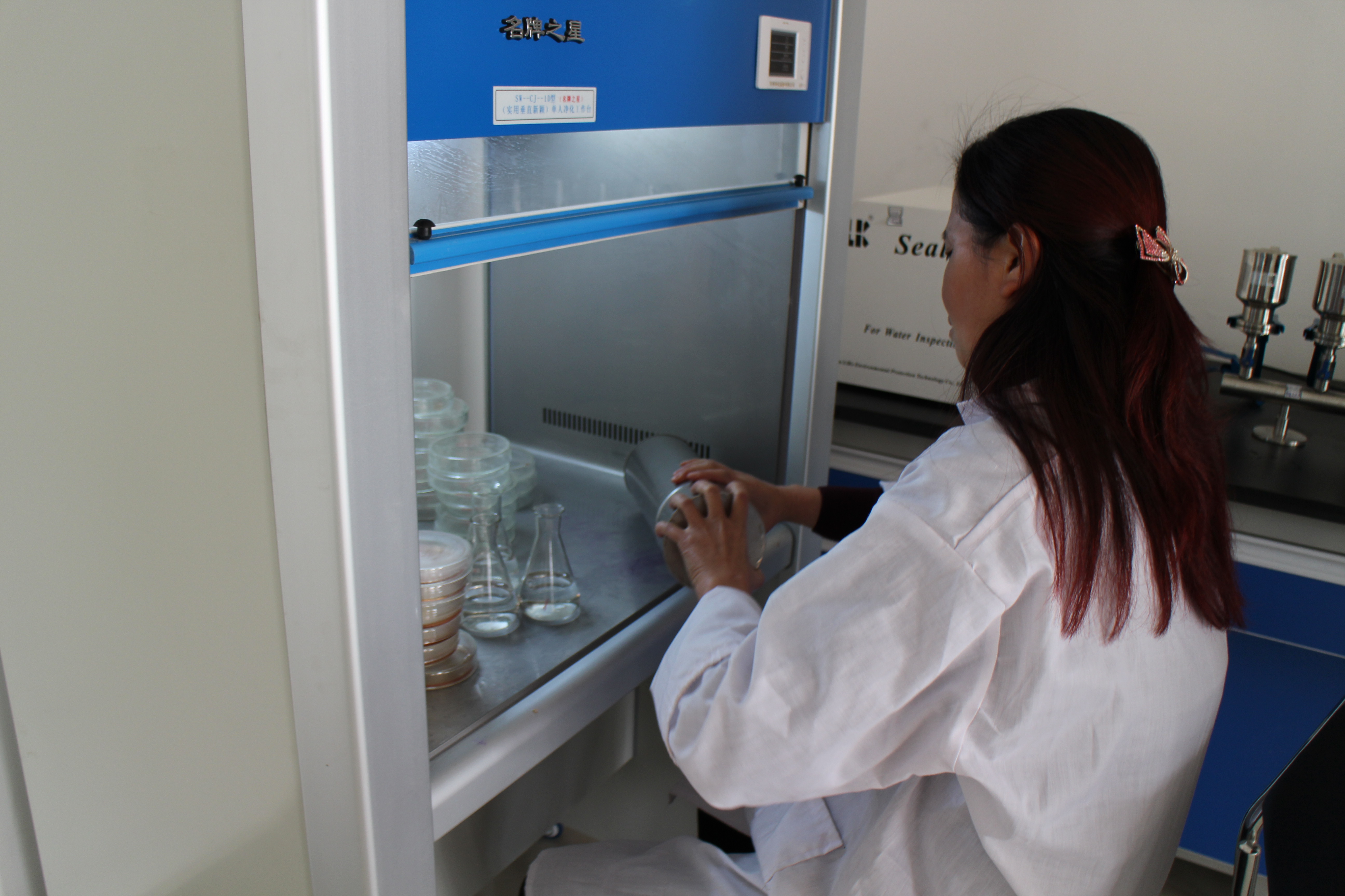 檢測(cè)中心王世平、賈麗萍進(jìn)行培養(yǎng)皿的清洗工作